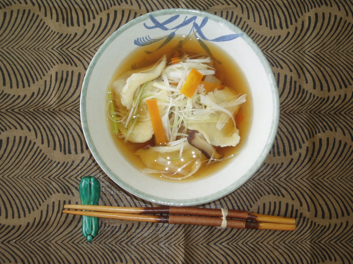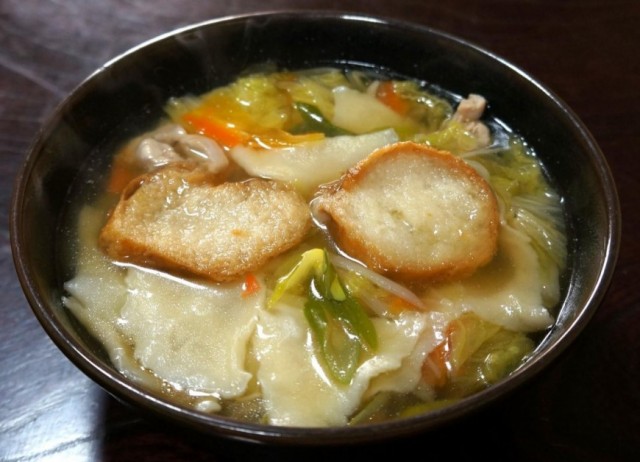 レシピ 宮城県登米市の郷土料理「はっと」汁をお家でいただく。小麦粉で作る、はっとと、あぶら麩に味が染みて : ビストロパパ ~パパ料理のススメ~。