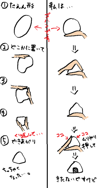 おにぎりが上手く握れませんコツを教えてください!!!!!もう2- Yahoo!知恵袋。