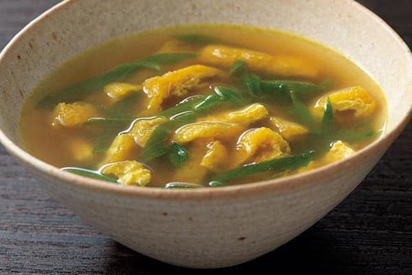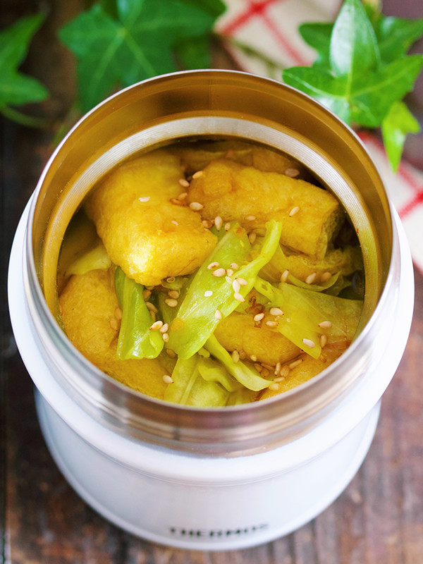 春キャベツと油揚げのジンジャーカレースープ。