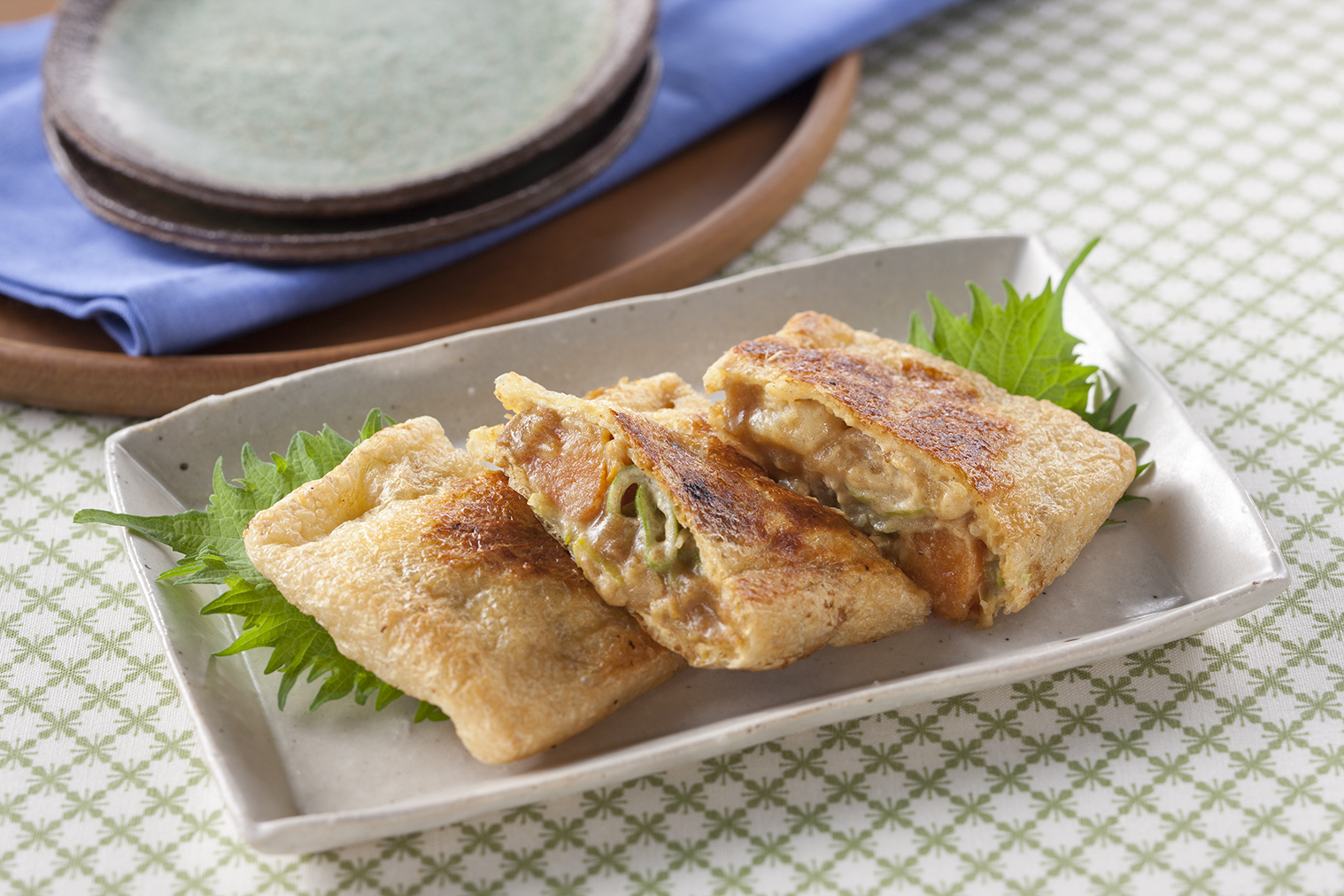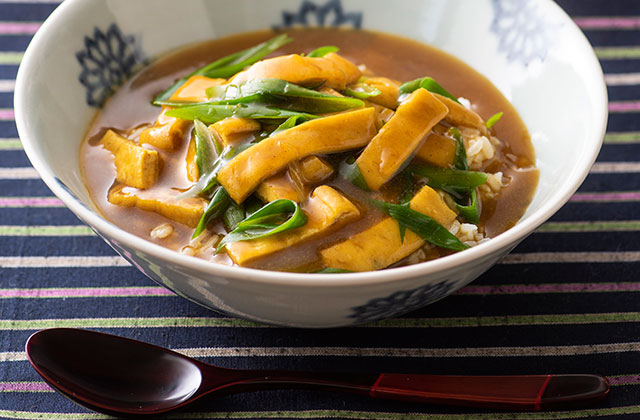栃尾の油揚げの豆乳グリーンカレー煮。