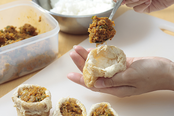 油揚げのカレー風味ツナキャベツ詰め。