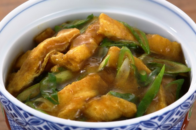 お箸が止まらない! 油揚げとねぎのカレーうどん。