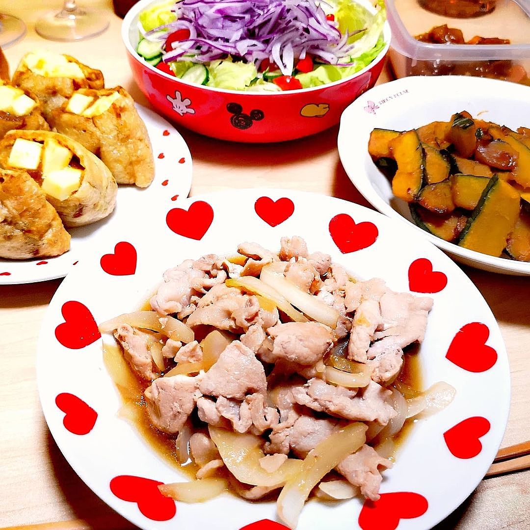 ▽焼きトマトチーズカレードリア ▽栃尾の油揚げ ▽水菜のサラダ ▽舞茸と人参とほうれん草のスープ自炊おうちごはん簡単レシピカレ。