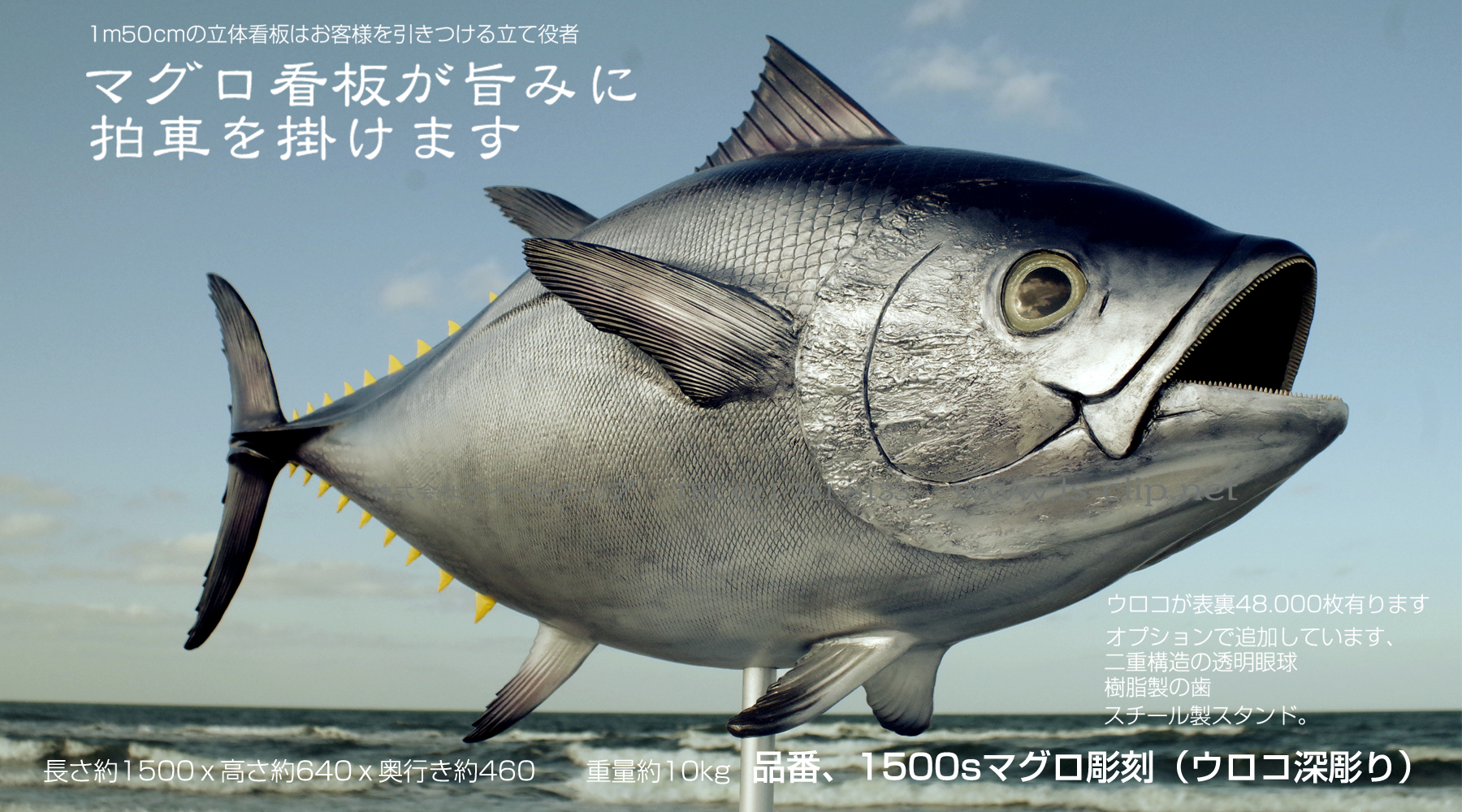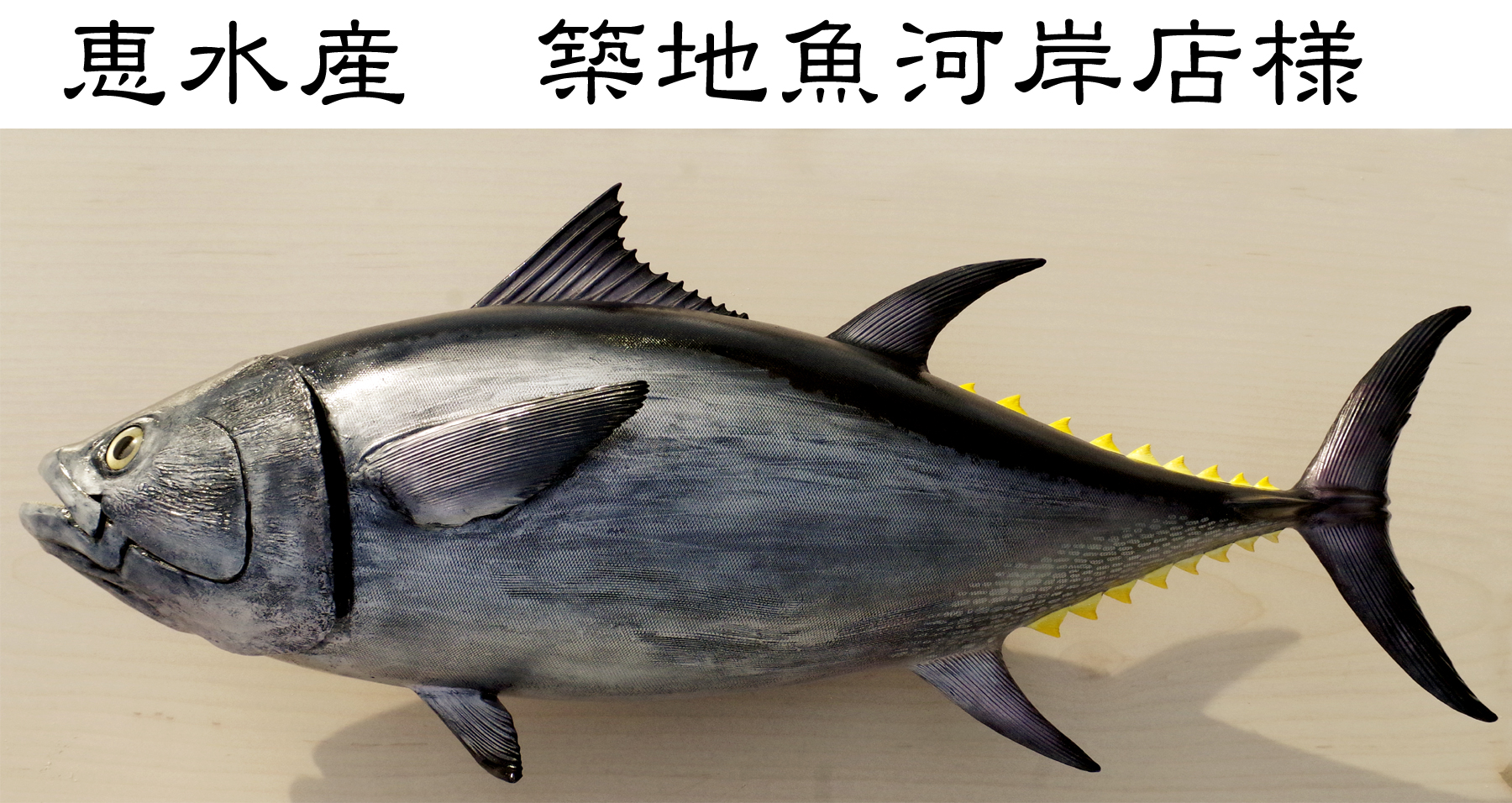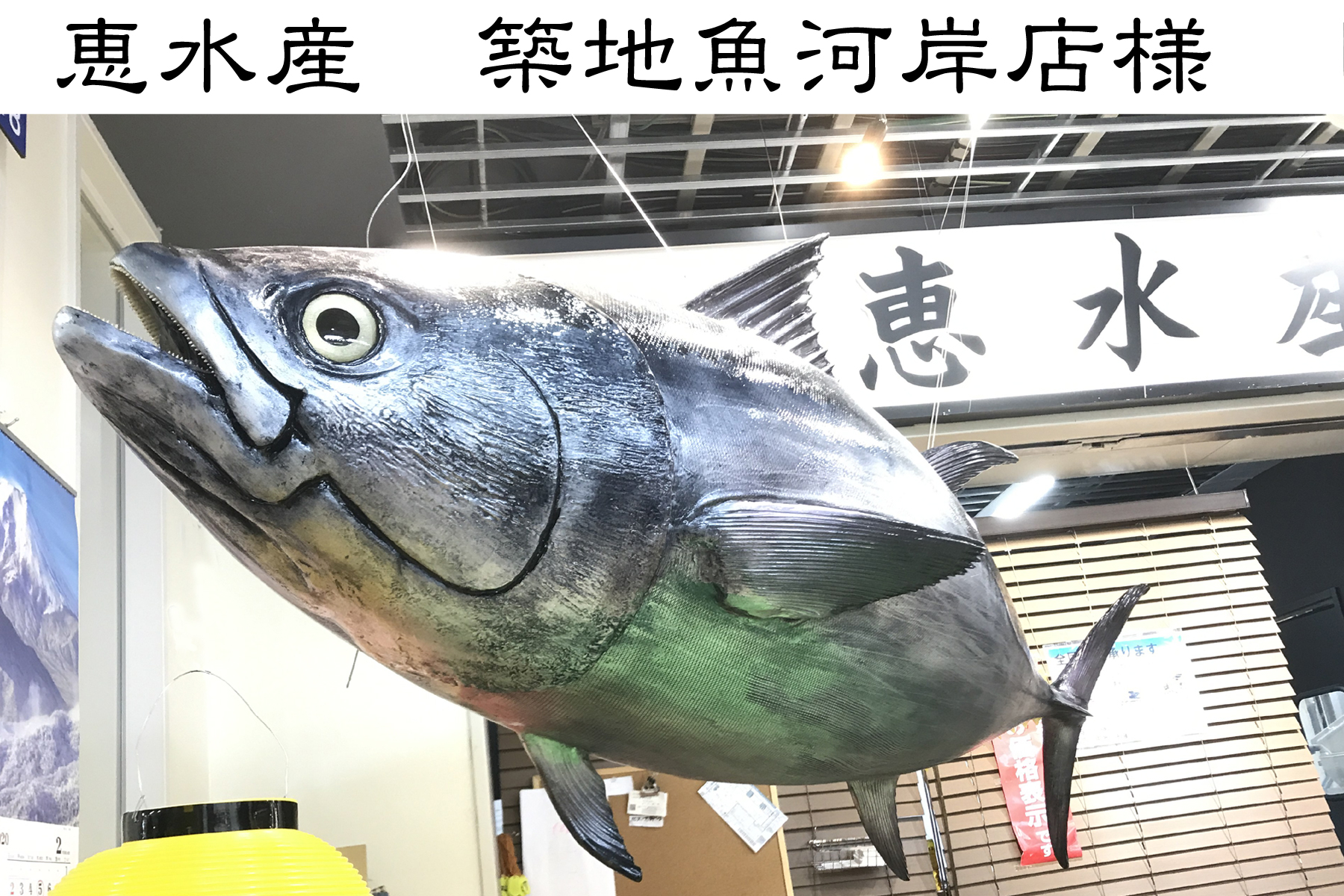 お魚屋さんの顔リアルなマグロ看板、東京築地の恵水産築地魚河岸店様、 – 株式会社ティーズ・クリップ。