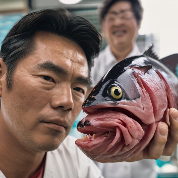 マグロのトロの部位の顔をした人間。 - AI képgenerátor Prompt。