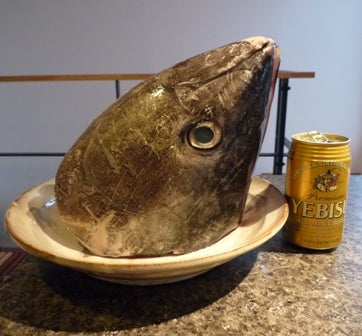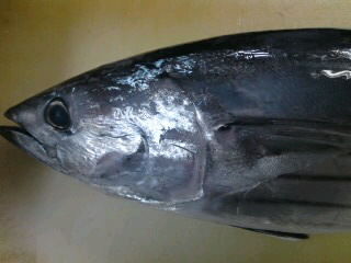 メバチマグロ 「顔」 をさばきました。 ホホ肉です!司馬 勝の 「海の幸大好き!」。