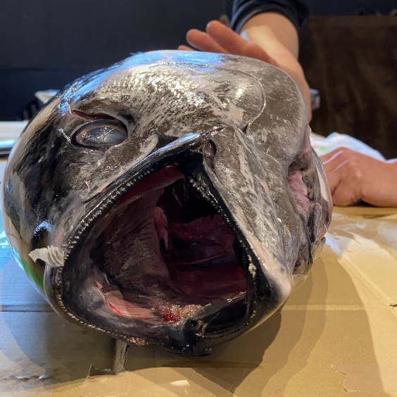 天然目鉢まぐろ。 目が大きくぱっちりしているためその名が付きました。 実は愛嬌ある可愛いお顔。 本日は超低温まぐろ1本まるごと、解凍実験。@neo.emotion の職人達とコラボした、寿司ケータリングの企画を進行中!!三崎港三崎まぐろ三崎恵水産城ヶ島まぐろ。