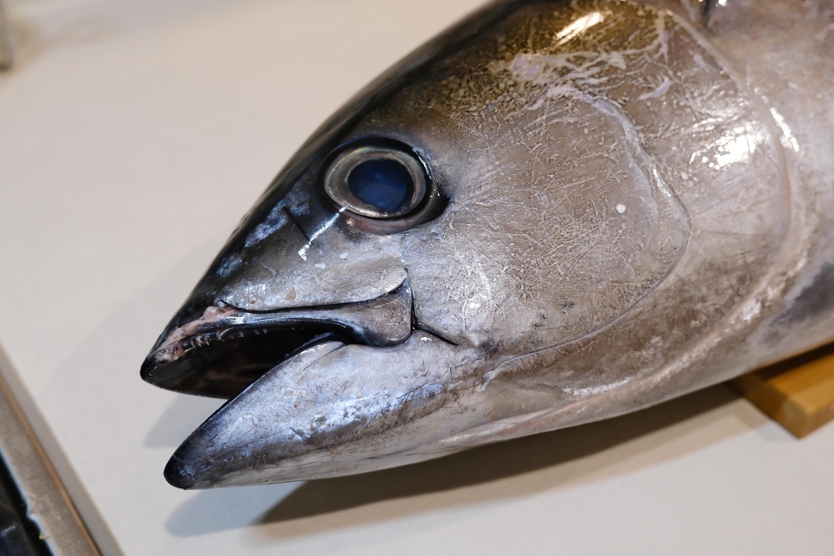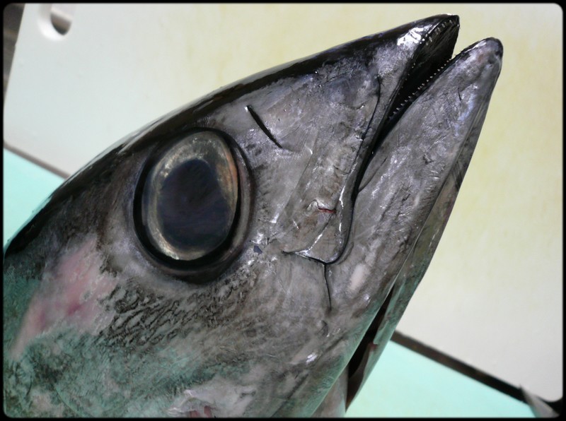 メバチマグロ剥製。, 目の大きいマグロ、マグロ類は顔表情を作るのがとても難しいんです。目玉の形、ひずみ方、向きなど。,魚類剥製 マグロメバチマグロ キハダマグロクロマグロオガワアート オガワアートコレクション fishtaxidermyfishmountfishartogawaartogawaartcollection。