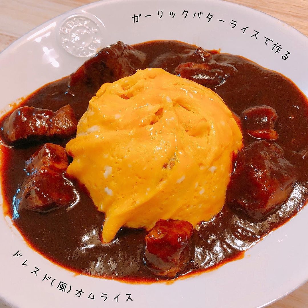 ガーリックバターライスで作る ドレスド 風 オムライス。