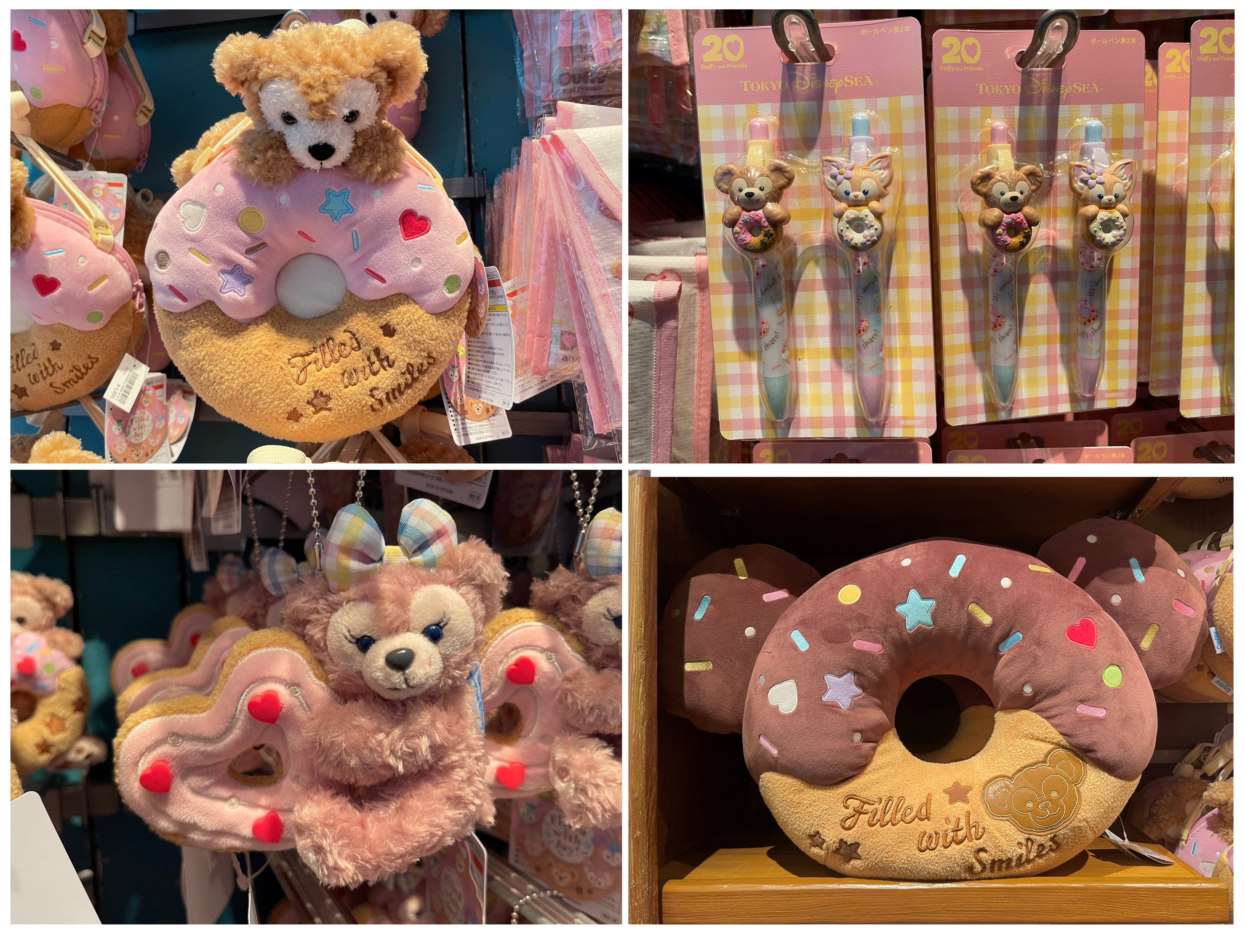 カラフルなドーナツデザイン!東京ディズニーシー「ダッフィー&フレンズのフィルド・ウィズ・ジョイ!」スペシャルグッズ - 20周年 カラフルハピネスフィルドウィズジョイ ぬいぐるみ 3種 リーナベル。