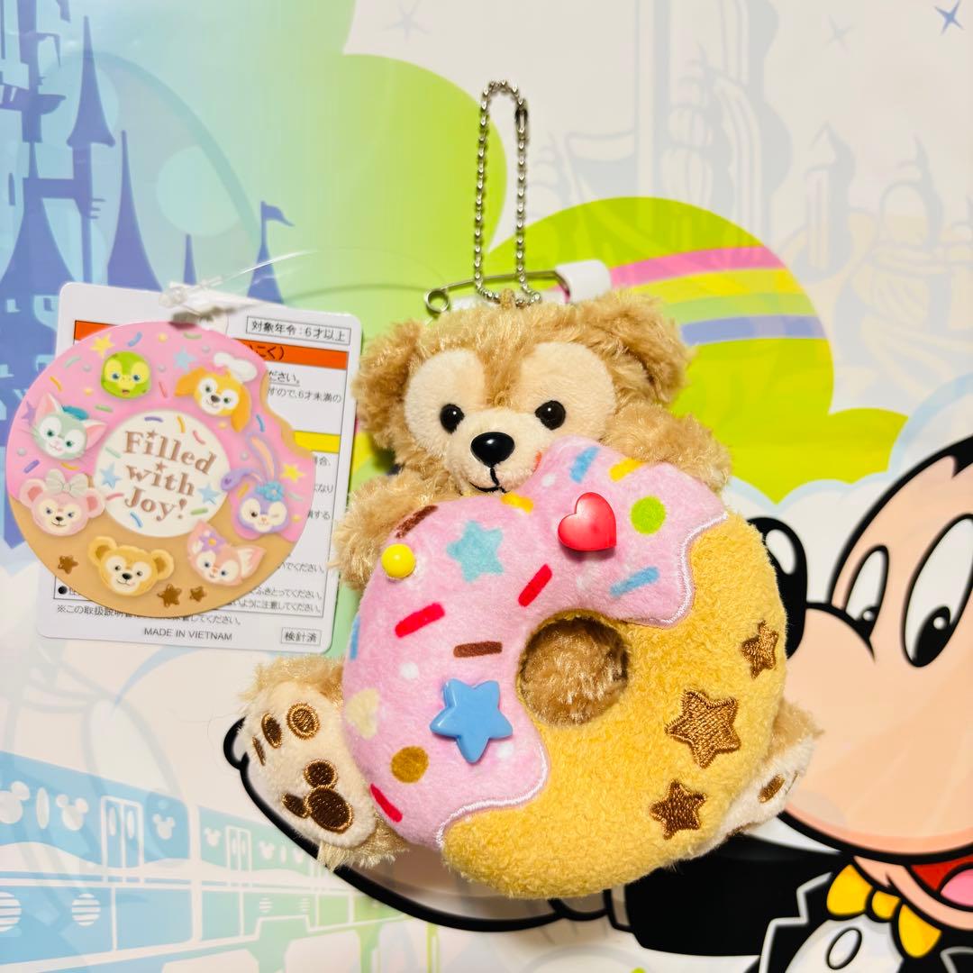 本日発売 フィルドウィズジョイ ダッフィー ぬいぐるみ キーチェーン ディズニー カラフルなドーナツデザイン!東京ディズニ。