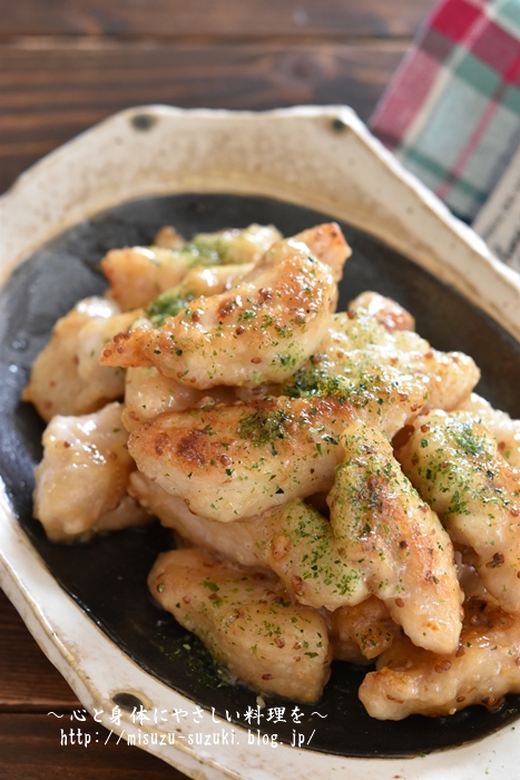 冷凍肉おかず① 多めのたれでしっとり仕上がる 「鶏肉のマスタード焼き」。