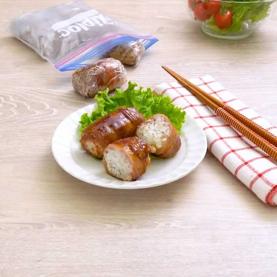 まとめて作っておいしく保存! ごちそう肉巻きおにぎり。