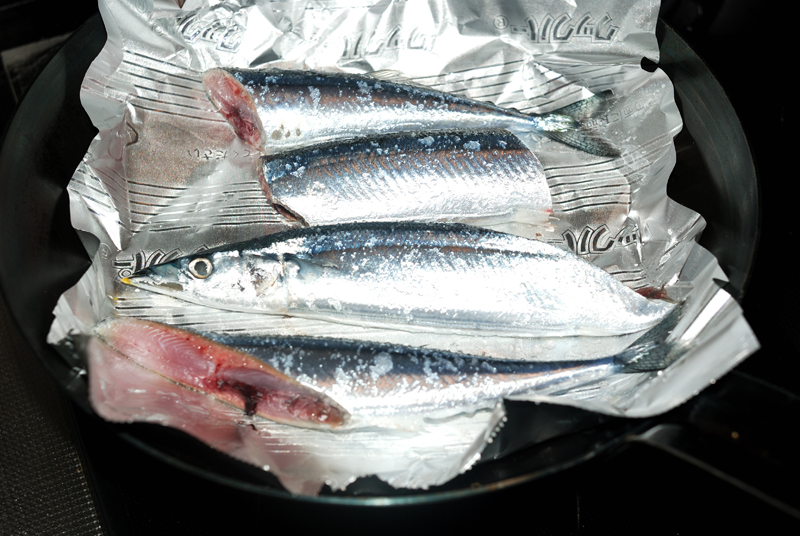 もう魚焼きグリルを汚さない!サンマの塩焼き。