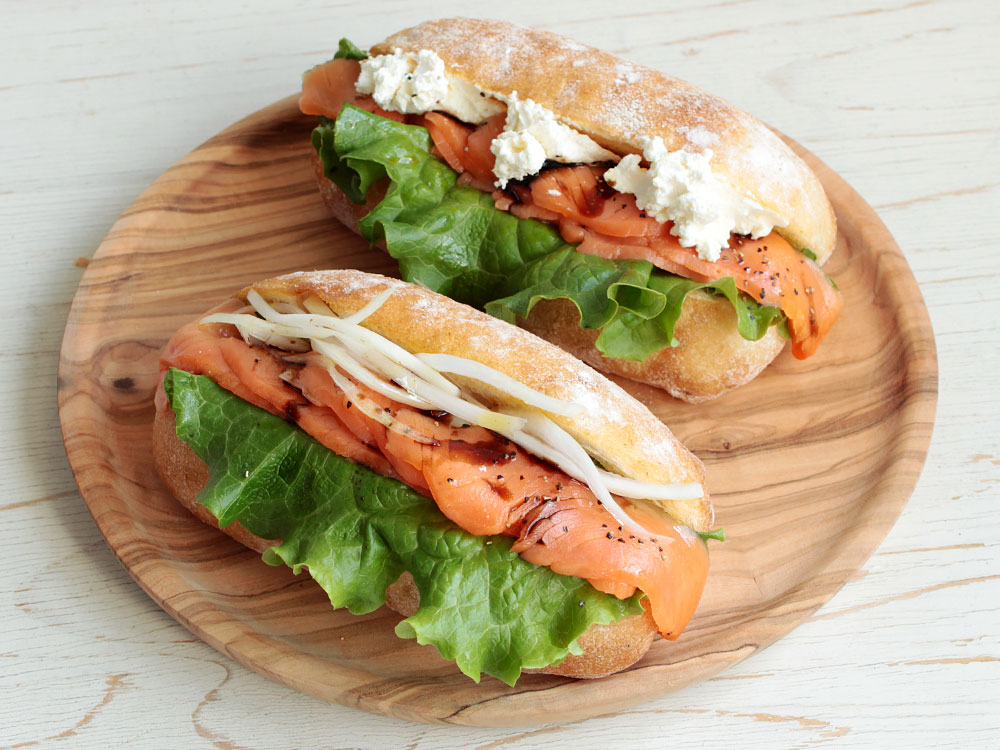 まるちゃんさん・チャバタでアボカドとサーモ。