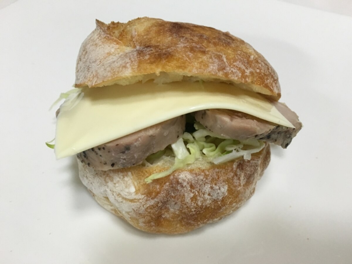 自家製チャバタでハムチーズサンドみずのさちこ。