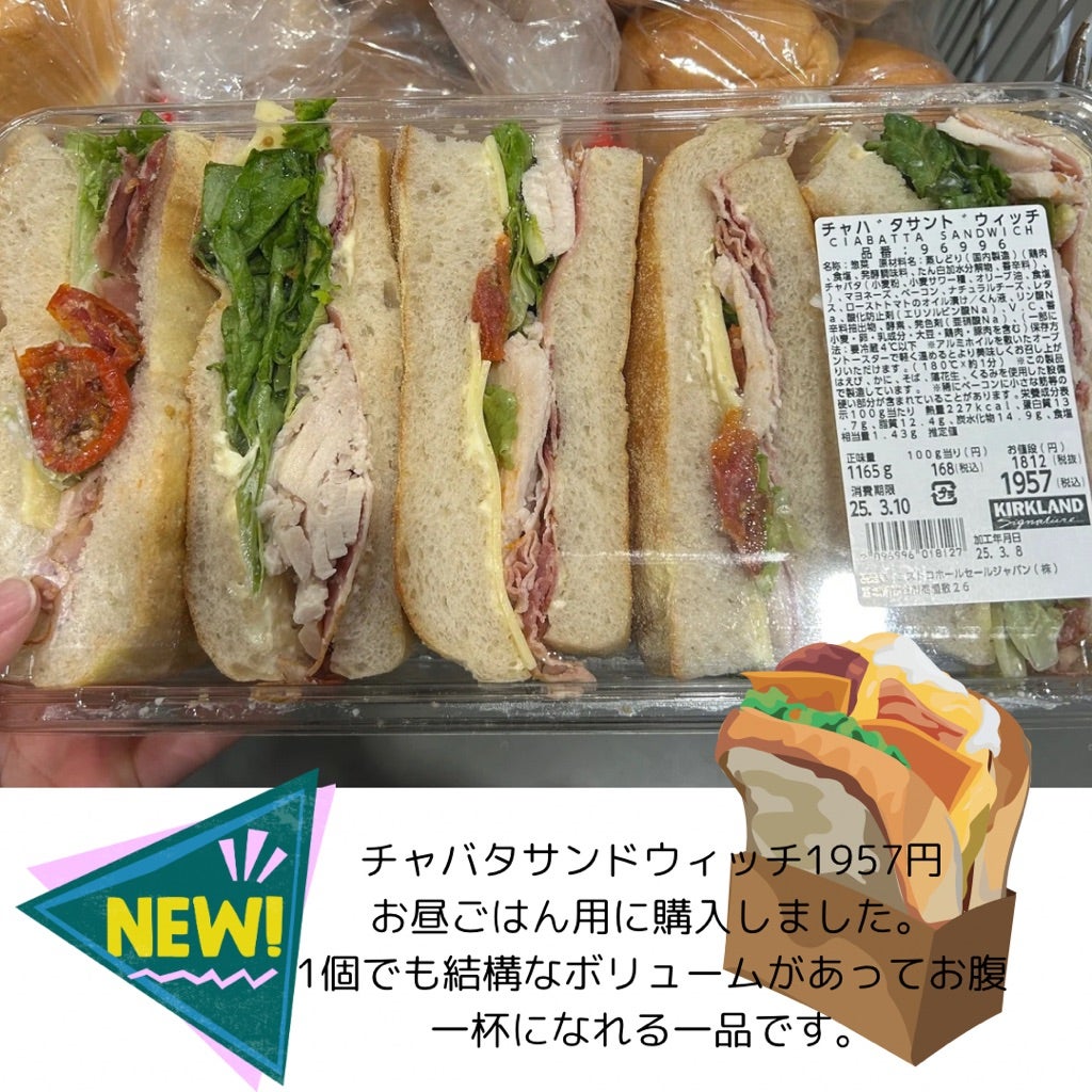 コストコ新商品 チャバタサンドウィッチを食べてみた!外はパリッ、中はモチッのパンが最高! コストコハッカー- エキスパート - Yahoo!ニュース。