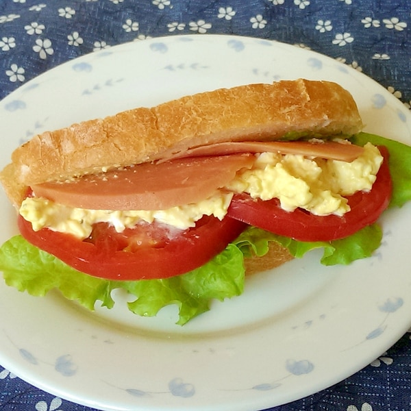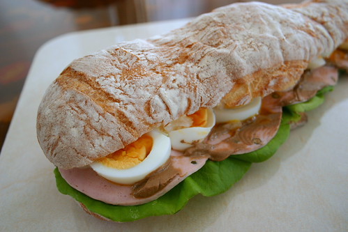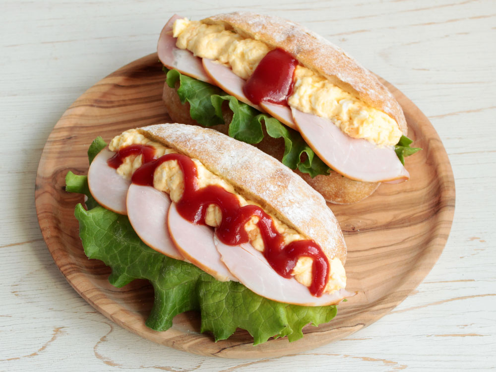たまごとハムのチャバタサンド。
