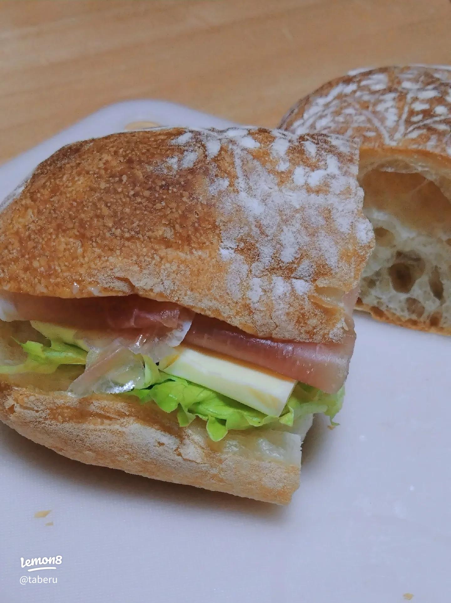 パン職人 チャバタのサンドイッチ半端なく美味い🤤。
