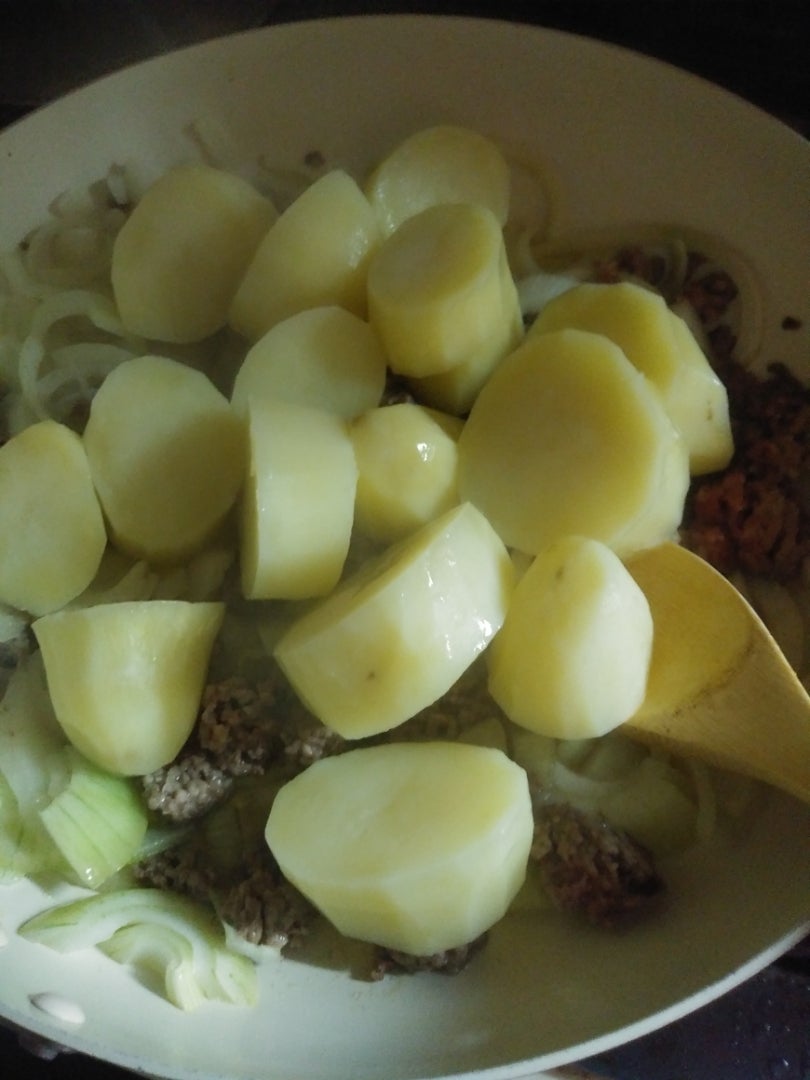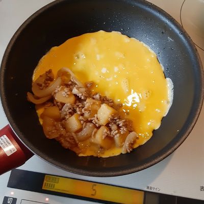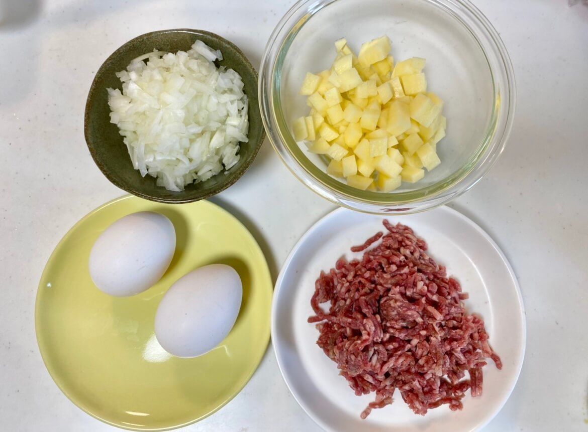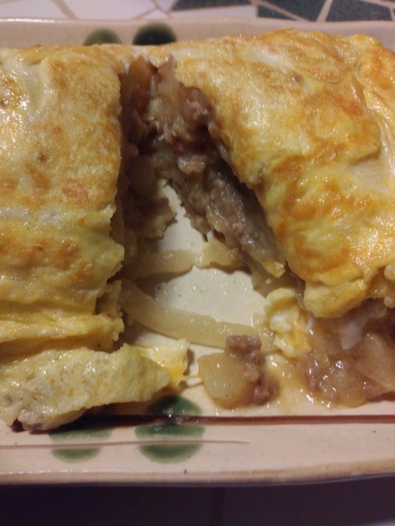 懐かしい昭和の味☆ひき肉とジャガイモのオムレツ。