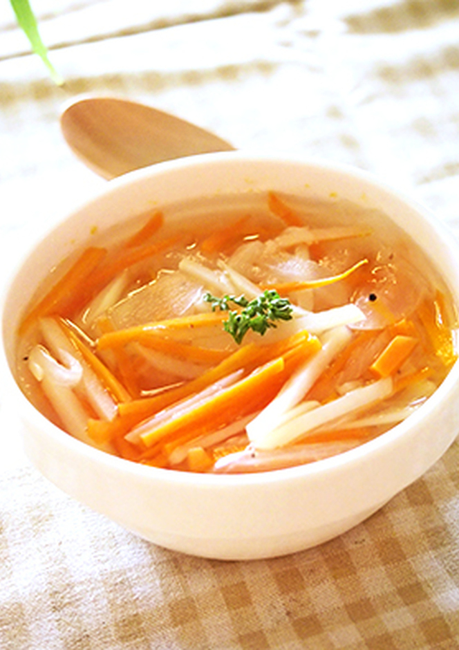 にんじんと玉ねぎのコンソメスープゆり子のおいしい暮らし。
