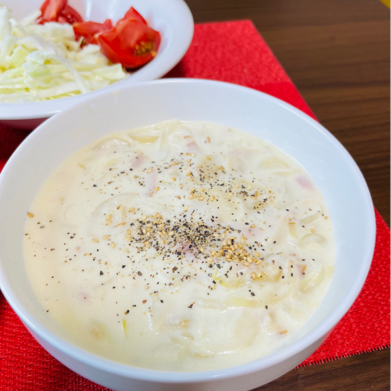 優しい味♪ キャベツと玉ねぎのミルクスープ。