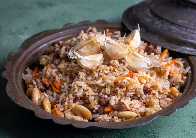 ウズベキスタンのピラフトルコ語名: Ozbek pilaviPremium写真。