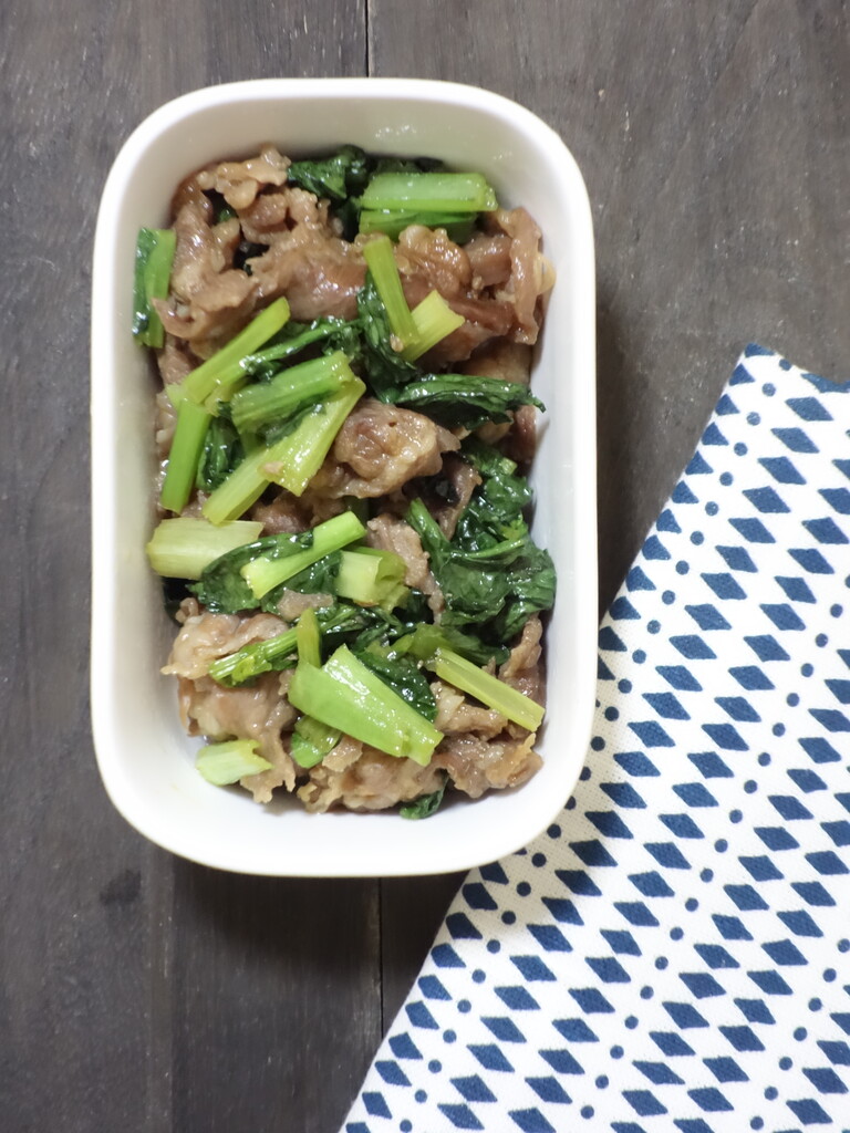 小松菜と豚肉のオイスターソース和えお弁当お弁当おかず簡単レシピ時短レンチン電子レンジおかずレシピ2212:のんびり毎日 日々の暮らしの食卓 いただきますのレシピ 時々 編み物。