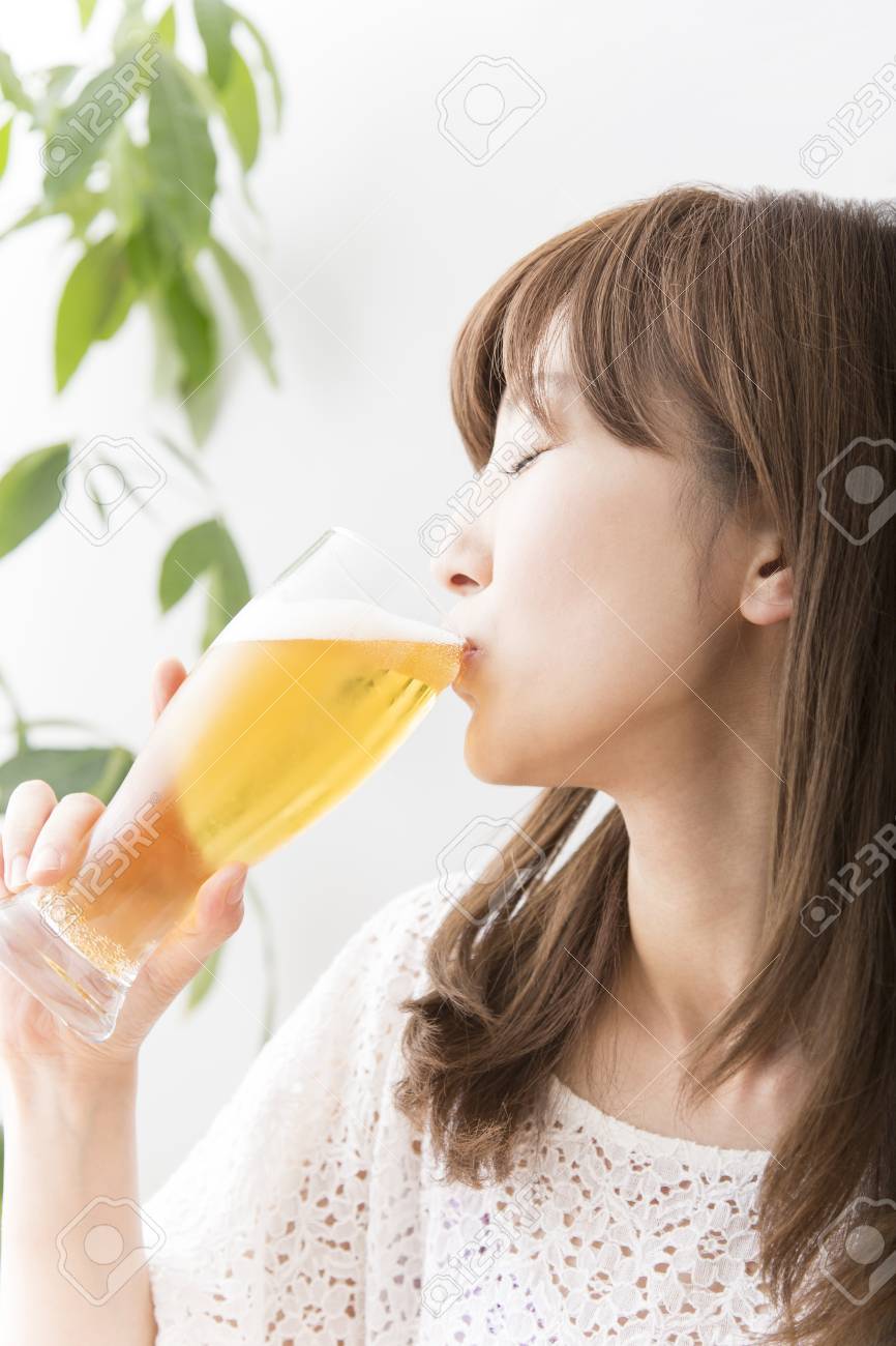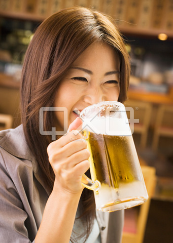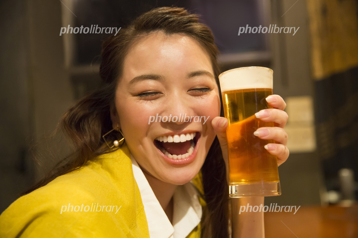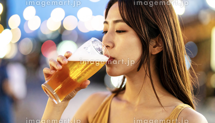 ビールを飲む日本人女性21887898 の写真素材 - アフロ。