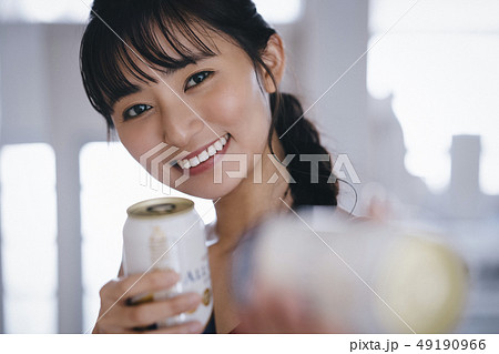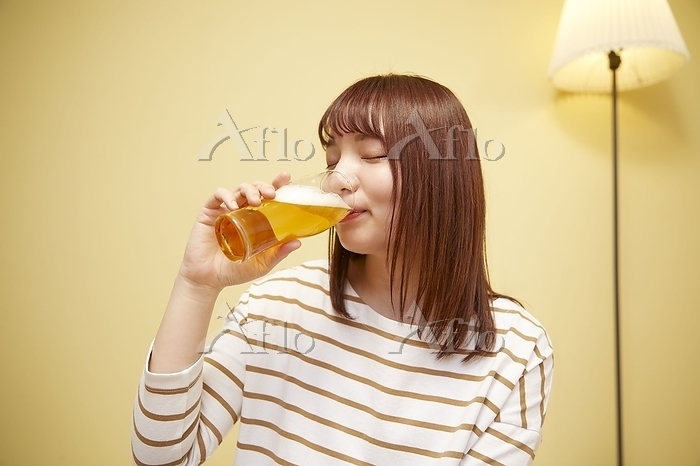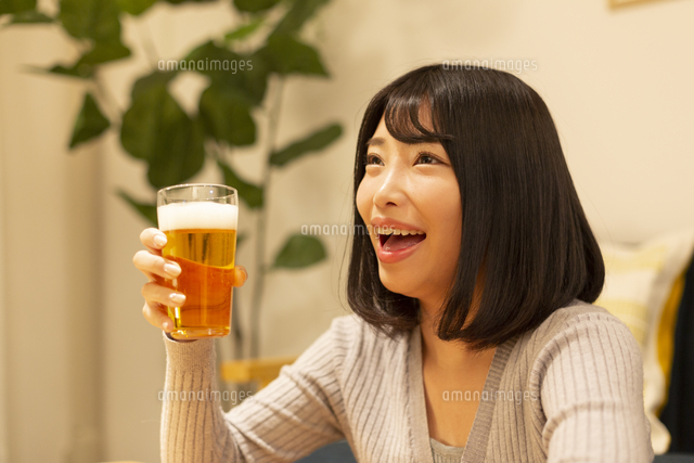 家でビールを飲む若い日本人女性159100264 の写真素材 - アフロ。