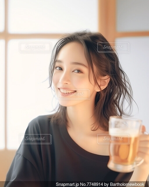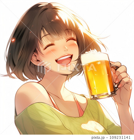 ビールを飲む女性 AI生成画像のイラスト素材296005545 毎月1点無料 フリー のストックフォト イメージマート。