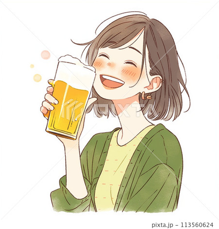 ビールを飲む女性のイラスト素材113560624- PIXTA。