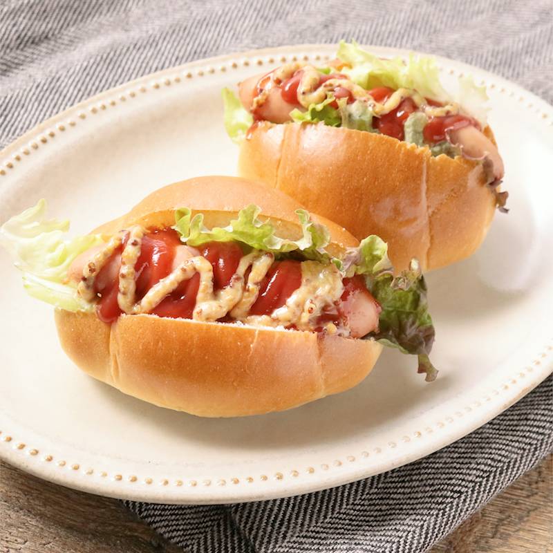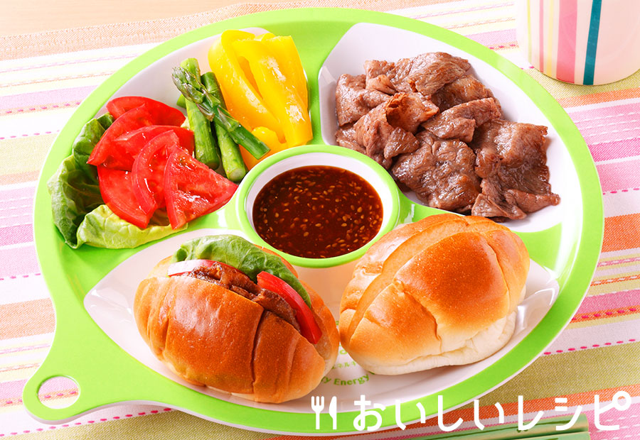ハンバーグのロールパンサンドレシピ味の素冷凍食品。
