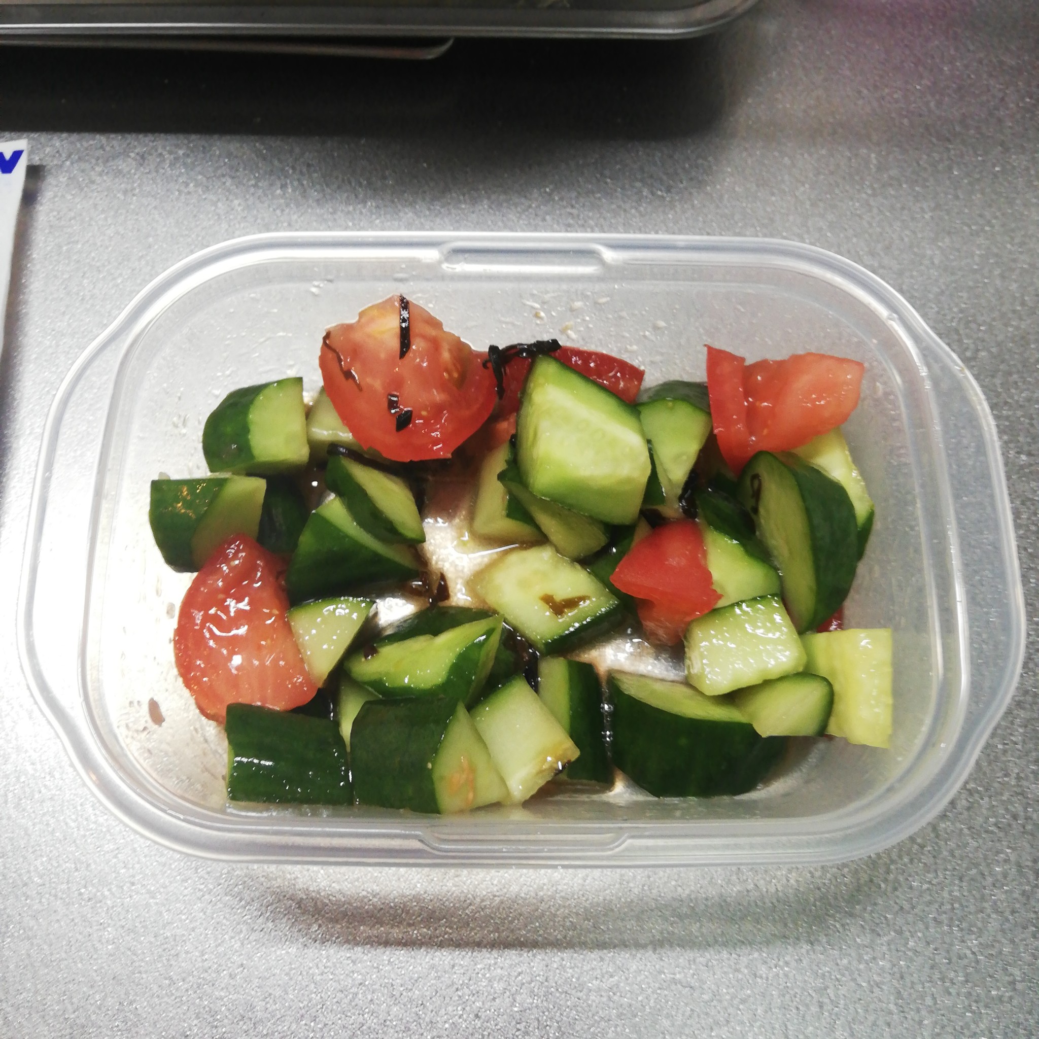 トマトときゅうりの塩昆布和え パパっと3分スピード副菜!。