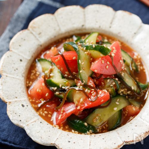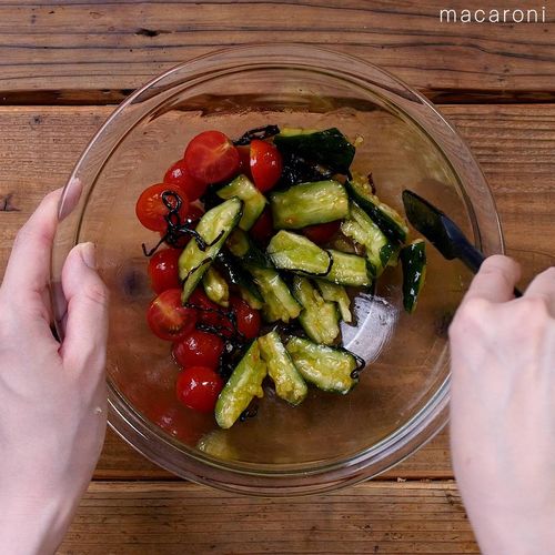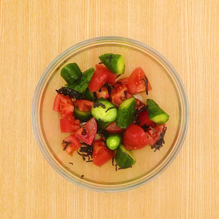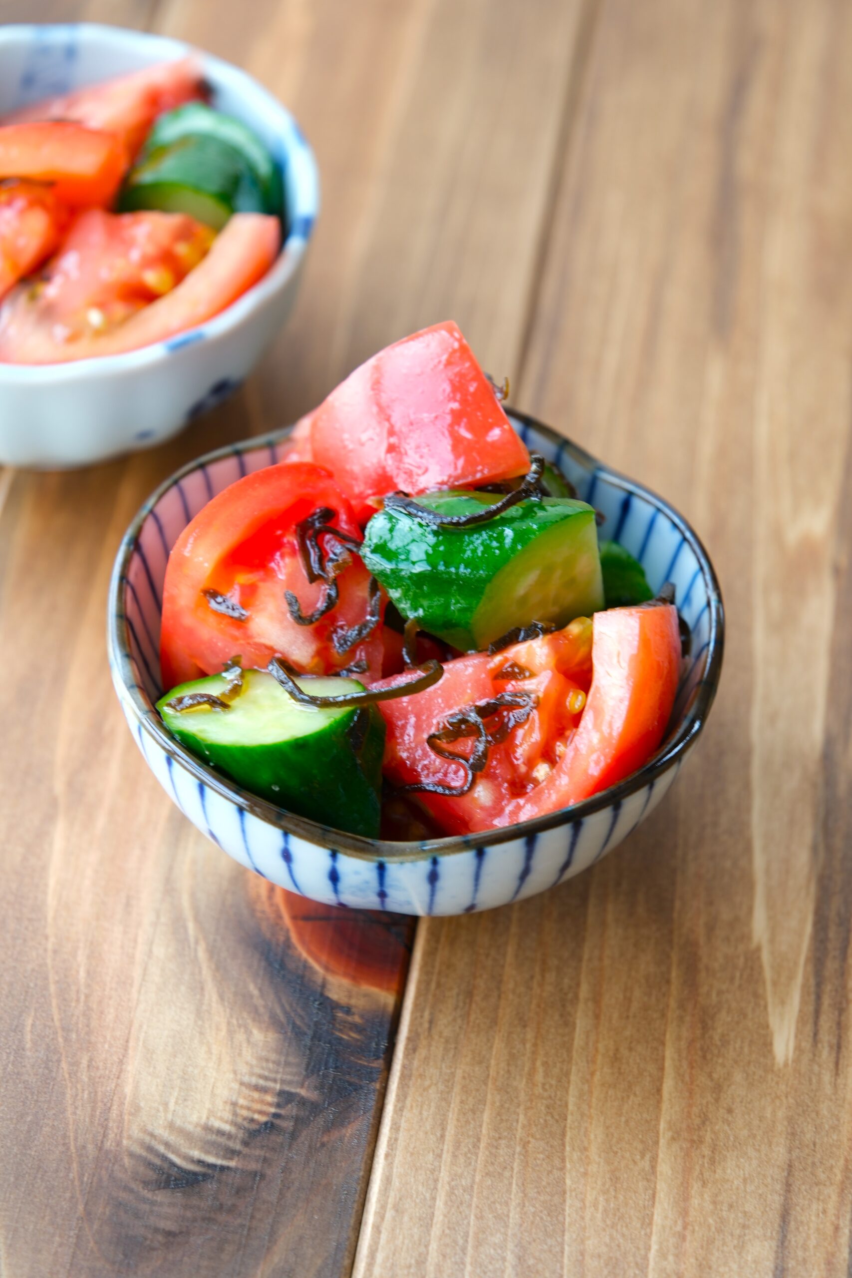 暑い日にぴったりのトマトときゅうりの塩昆布和えレシピ。