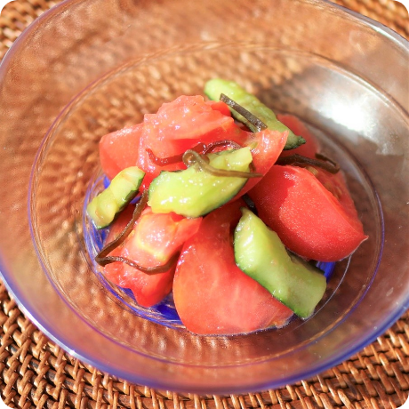 夏野菜レシピ トマトときゅうりの塩昆布和えのレシピ。