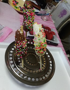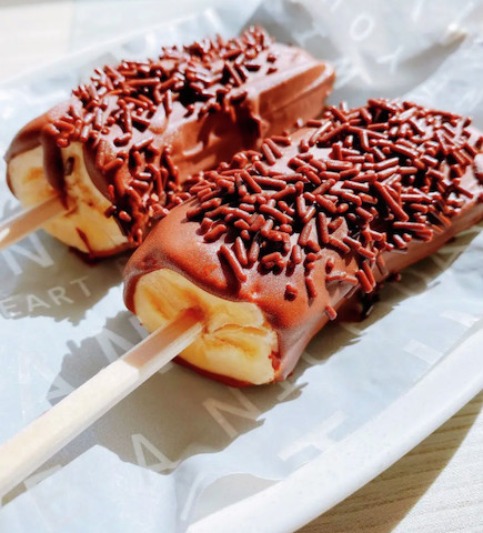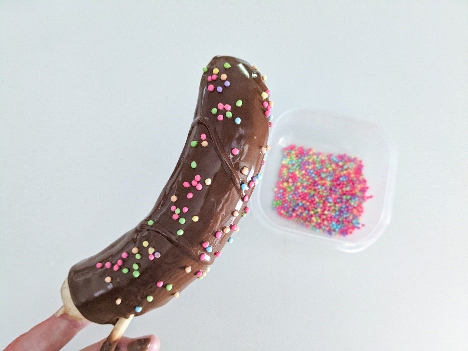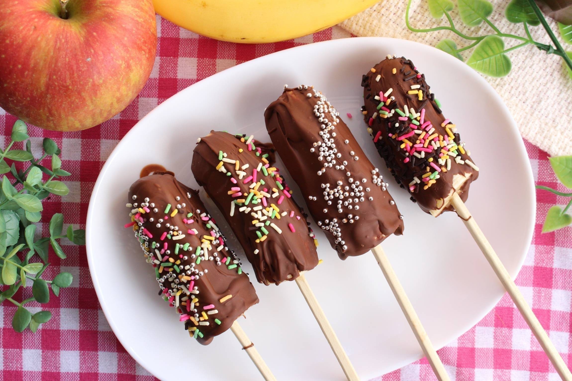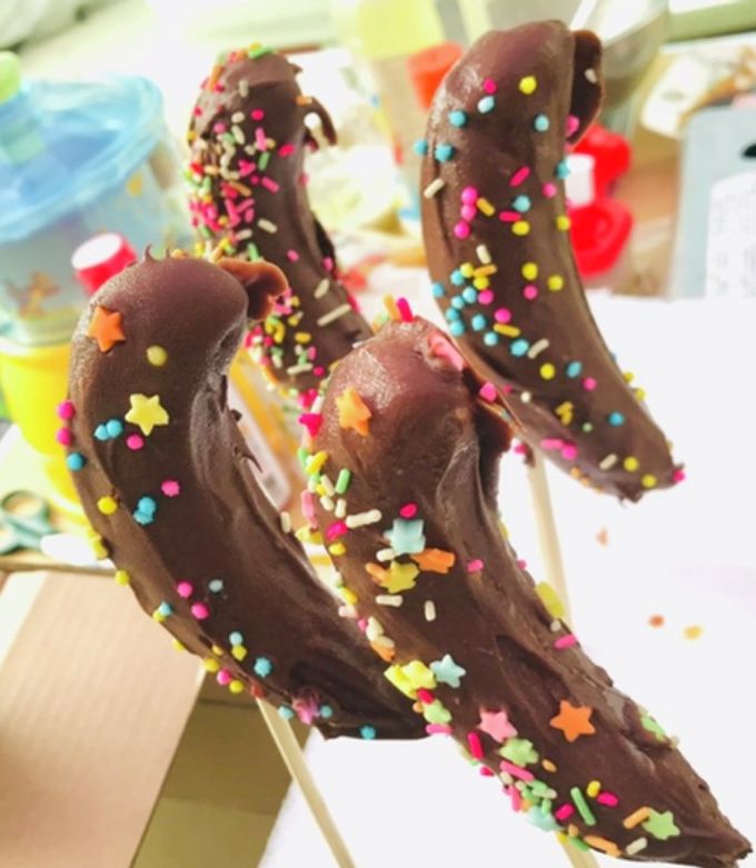 屋台のチョコバナナをおうちで♪「おうちで簡単チョコバナナ」ならパリッとキレイに作れますえんウチ。