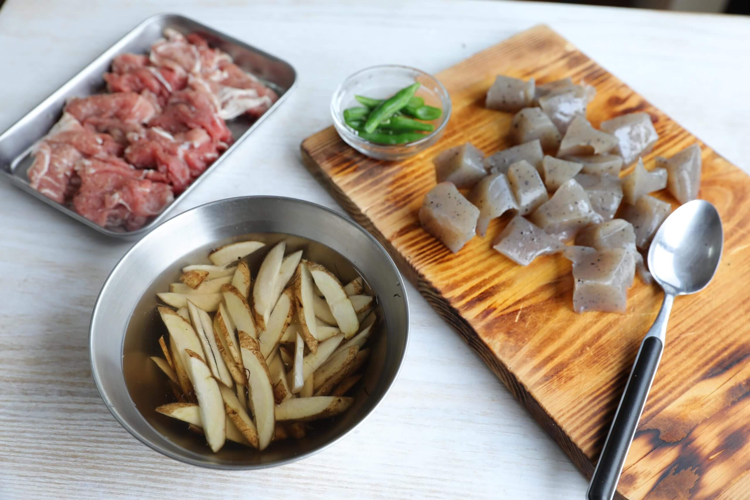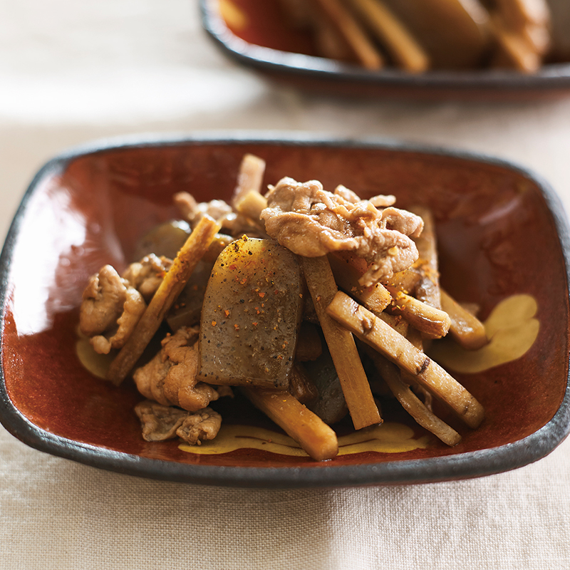 豚肉と新ごぼう、こんにゃくの甘辛炒め。