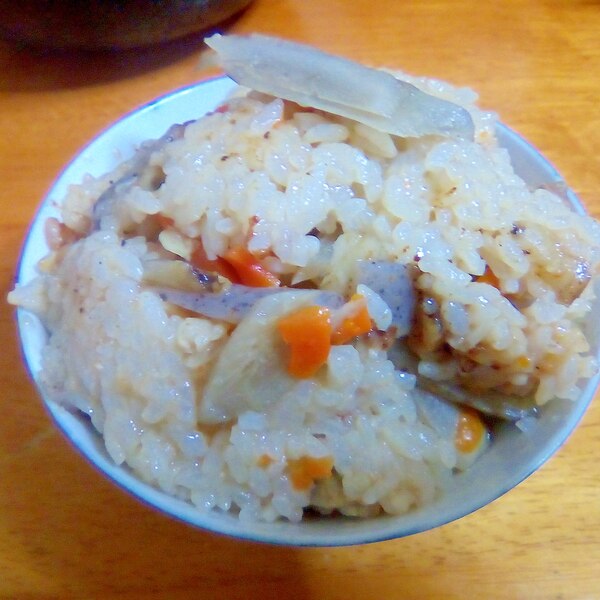 そのまま煮ておいしい新ごぼうの炊き込みご飯。