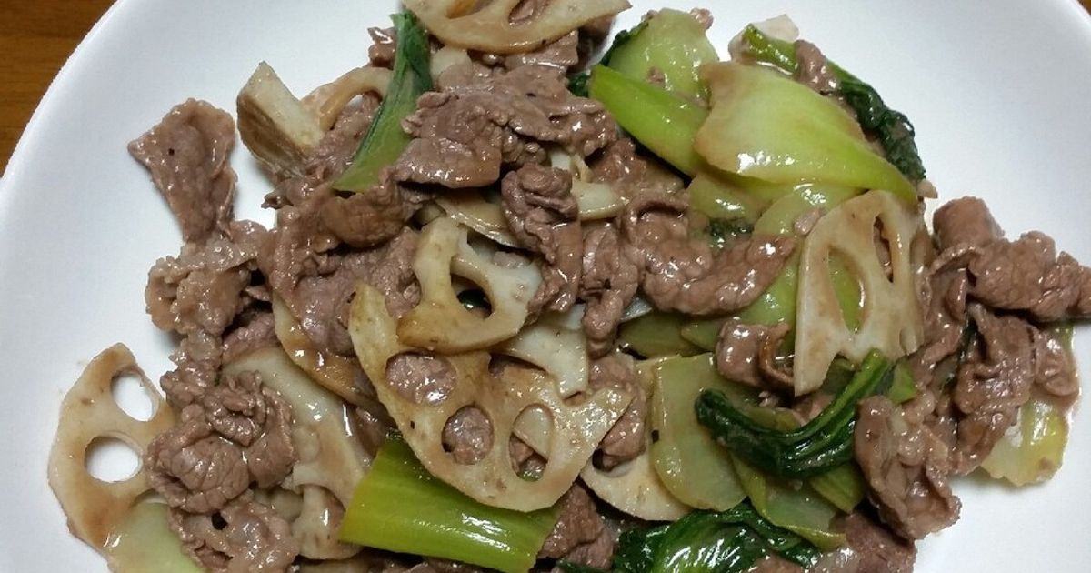 牛肉とれんこんのオイスターソース炒めのレシピ・作り方 簡単&時短- レタスクラブ。