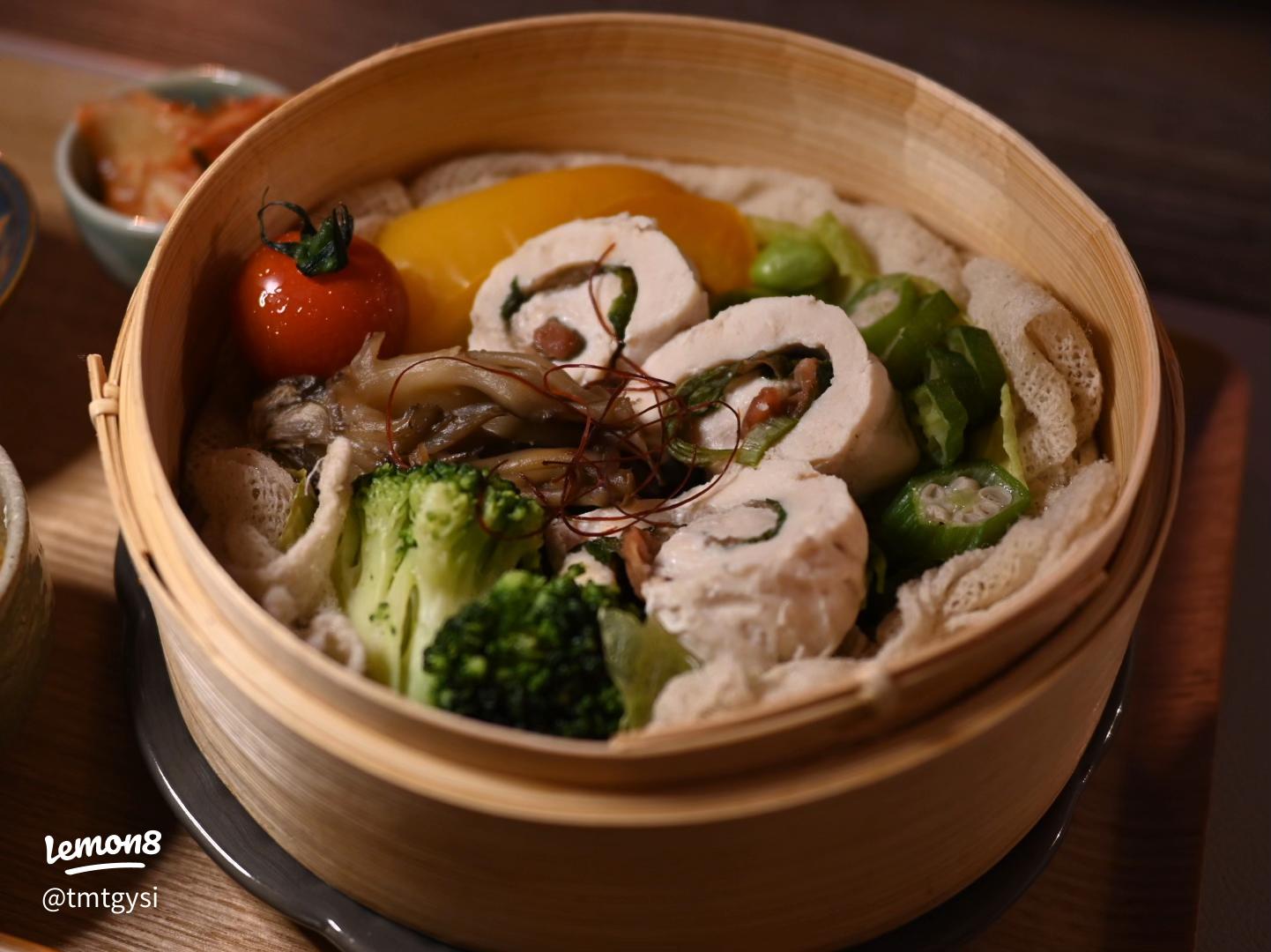 梅しそ鶏ロールと彩り野菜でヘルシーな晩ご飯。