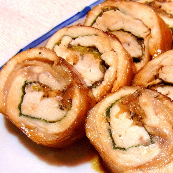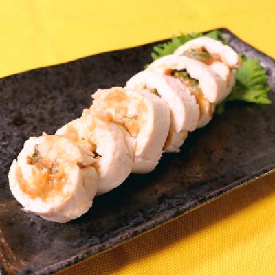 しっとり柔らか鶏むね肉の梅しそ巻き。