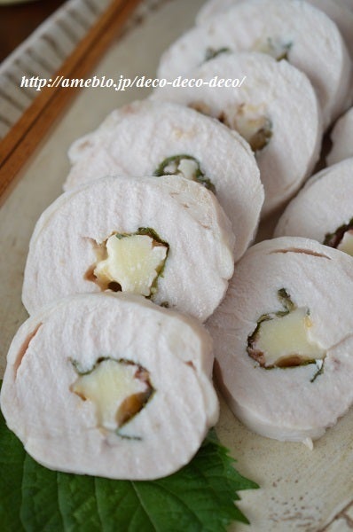 レンジで4分!鶏むね肉で「梅しそチーズチキンロール」~夏バテ気味でもさっぱり食べやすい♪decoの小さな台所。~体にやさしい妄想料理レシピ、薬膳メモ付き~。
