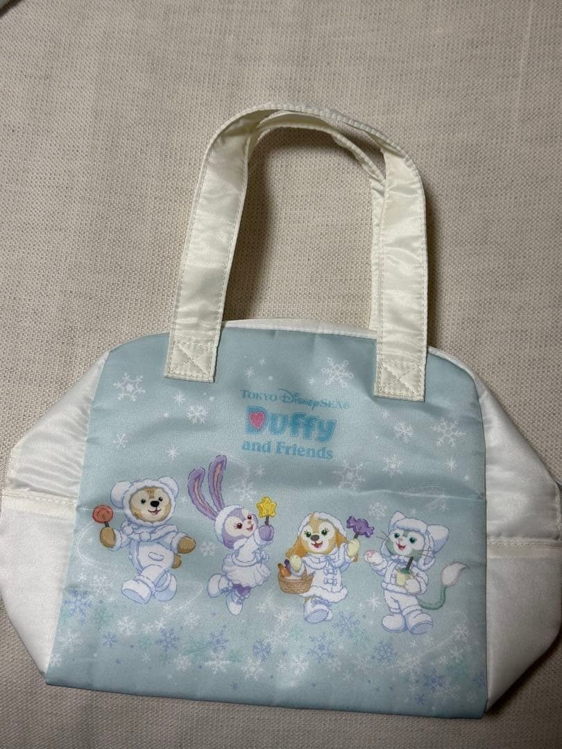 zq ダッフィー&フレンズ スーベニア ランチケース 保冷 お弁当トート ダッフィー&フレンズのダンシングスノーフレークスのグッズ ディズニーシー限定ダッフィーグッズエクセルワールド。