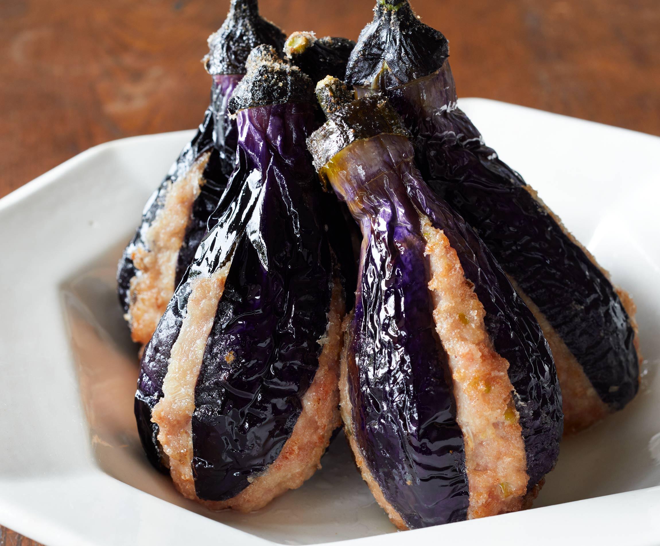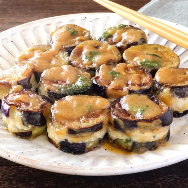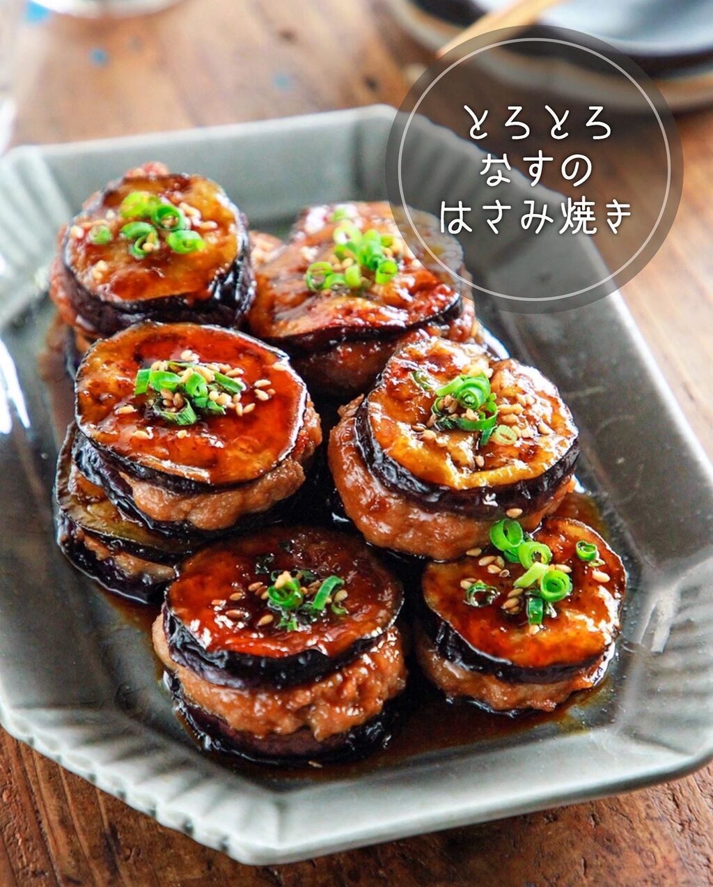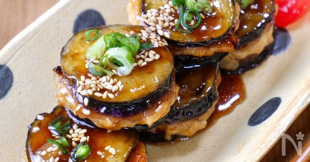 じゅわっとあふれる旨味!なすのはさみ焼き甘辛てりだれ。