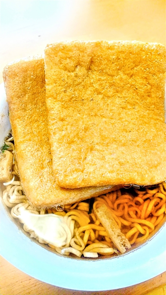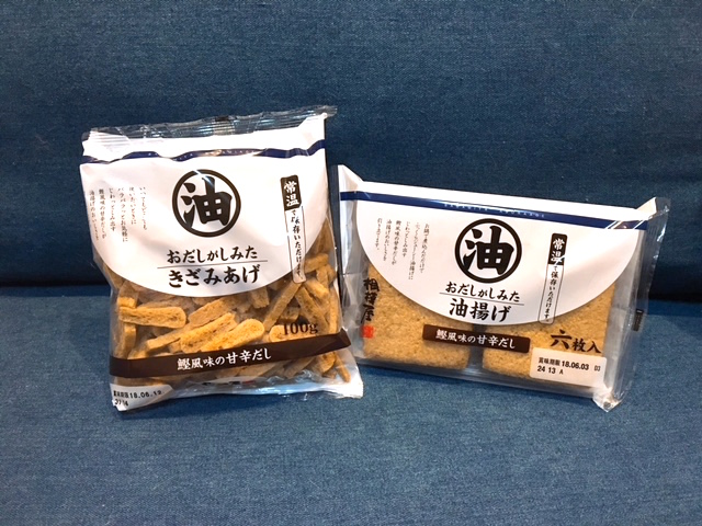 かっぱーめんちょ:おだしがしみた油揚げ・カリッと味しみのいいきざみあげ 常温保存。