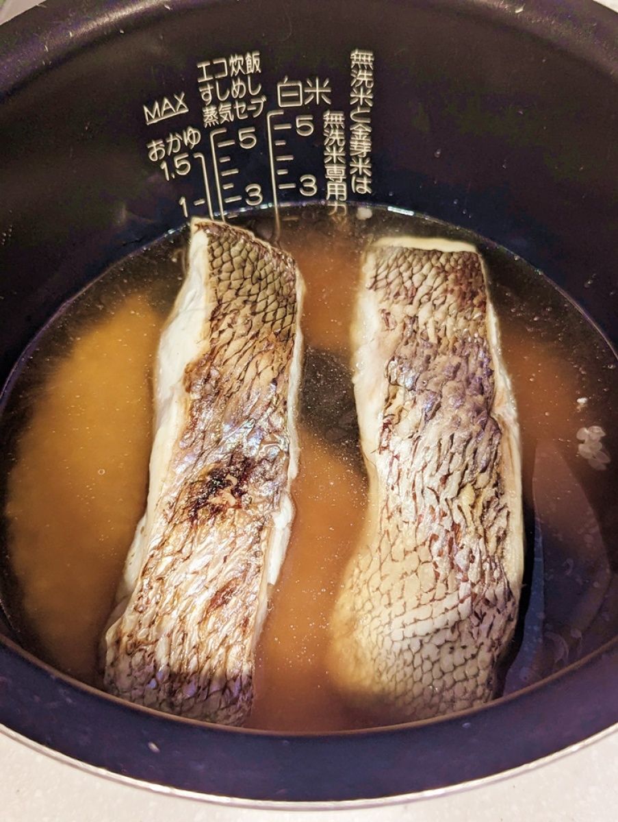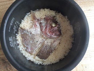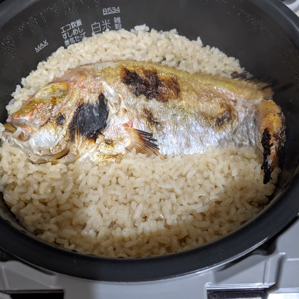 炊飯器で簡単鯛めし 焼いて入れるだけ。