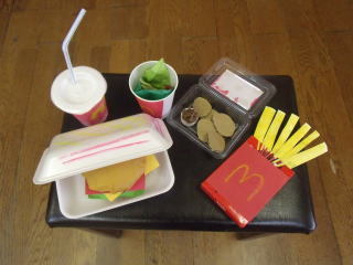 ハンバーガー屋さんごっこ5歳児クラスの製作でハンバーガーを作りました。 初めはハンバーガーとポテトだけでしたが、こどもたちから「ジュースとナゲットも欲しいよね」 「メニューも作ろう」と次々とアイディアがでてきました。商品が完成すると3、4歳児クラスの。