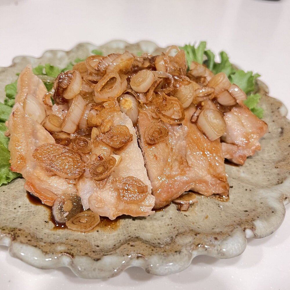 豚バラとらっきょうの甘酢ネギ塩の旨タレ焼き。