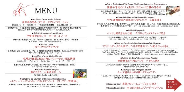 メニュー表魔法の馬車WEBで簡単手作りできるココサブのメニュー表。